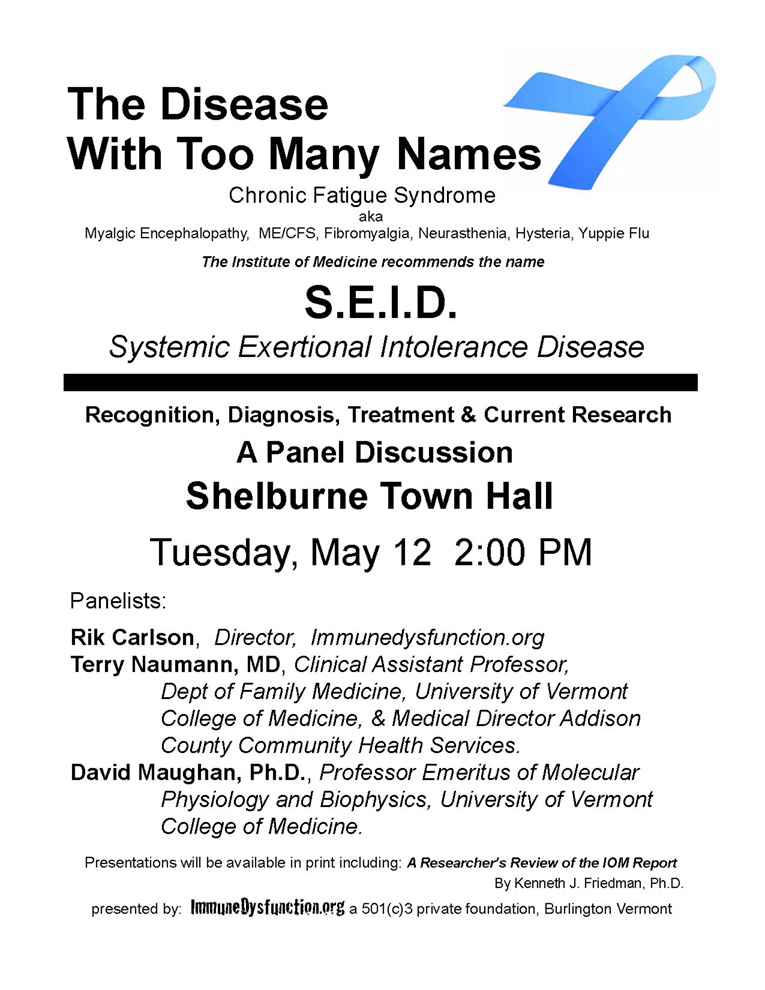 dba: The Vermont CFIDS Association, Inc. a 501(c)3 private foundation. P.O.Box 3162, Burlington, VT 05408 U.S.A. 1-802-881-3821